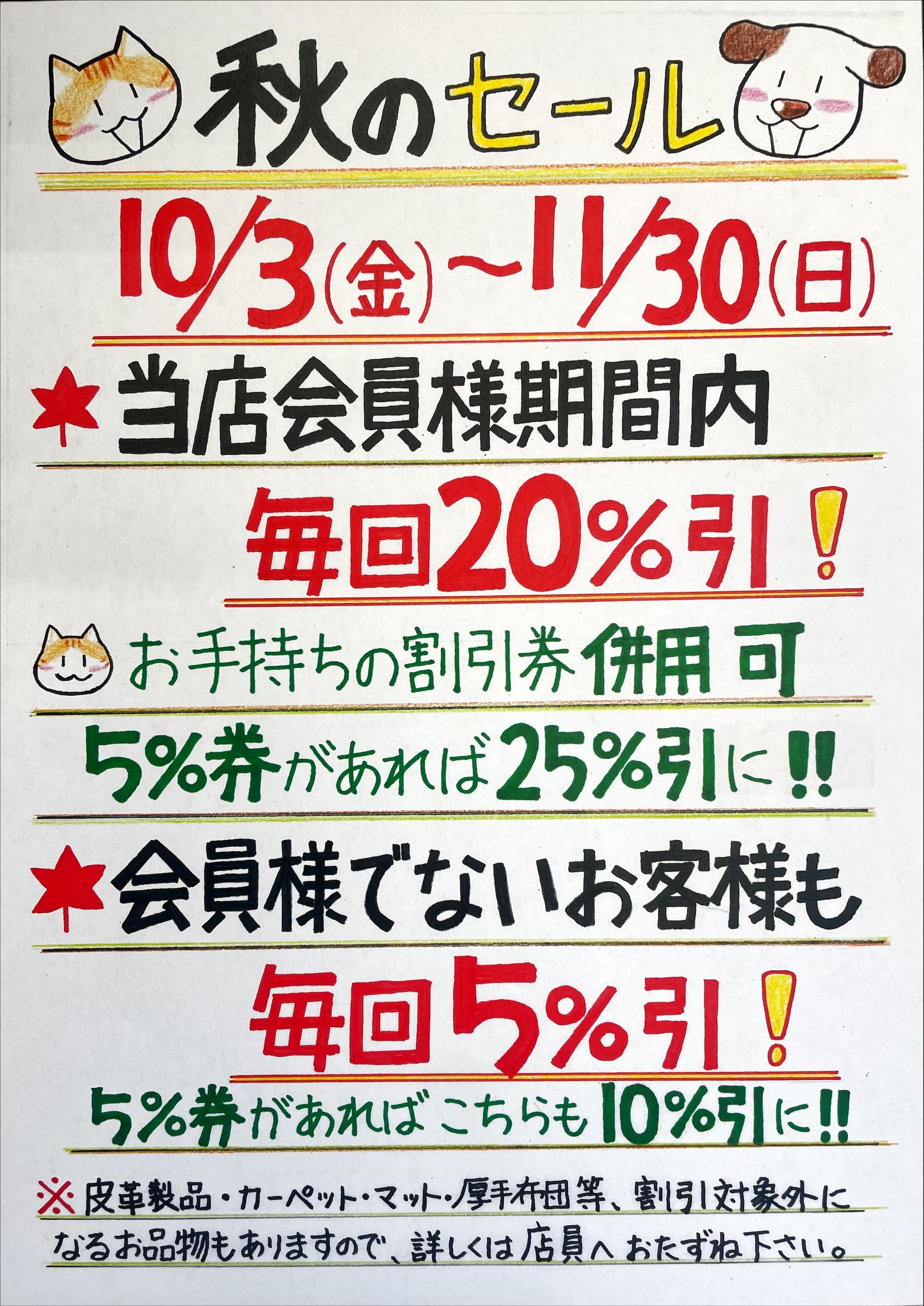 この画面を受付の際提示して頂くと、ドライクリーニング対象品(一部特殊品除く)を20%OFFにさせて頂きます。